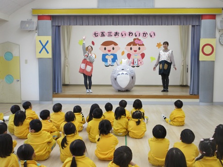 幼稚園の特色 幼稚園の紹介 年間の行事 預かり保育 未就園児教室 メニュー閉じる 幼稚園の特色 幼稚園の紹介 年間の行事 預かり保育 未就園児教室 園のブログ 七五三お祝い会 2025.11.17 七五三お祝い会をしました。七五三の意味を伝え、心身ともに健康に育ったことをみんなでお祝いしました。トトロもお祝いに来てくれて、園児たちは大喜び! 七五三に因んだ○×クイズで盛り上がりました。 たてわりの編成で7・5・3人の人数集めゲームもしました。年長学級の子どもが率先して人数を数えてくれました。 お祝いのお菓子をもらってみんな大満足のお祝い会となりました。 一覧に戻る よくあるご質問 お問い合わせ 【所在地】〒981-3215 仙台市泉区北中山二丁目6-3【TEL】022-376-4821