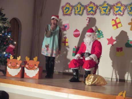 幼稚園のクリスマス会にサンタさんがやってっきました。