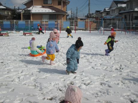 雪の上を走ったり、そり遊びをしたりして楽しく遊びました。