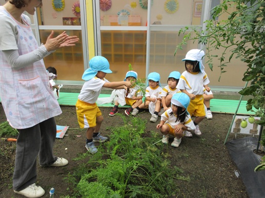 幼稚園の特色 幼稚園の紹介 年間の行事 預かり保育 未就園児教室 メニュー閉じる 幼稚園の特色 幼稚園の紹介 年間の行事 預かり保育 未就園児教室 園のブログ にんじんの収穫 2025.09.24 年少組の畑でにんじんを収穫しました。子ども達はにんじんを折らないようにまっすぐ上に引き抜きました。 にんじんは家に持ち帰り、それぞれのご家庭で料理してもらいます。「カレーに入れる!」とにこにこ笑顔の子ども達でした。 一覧に戻る よくあるご質問 お問い合わせ 【所在地】〒981-3215 仙台市泉区北中山二丁目6-3【TEL】022-376-4821