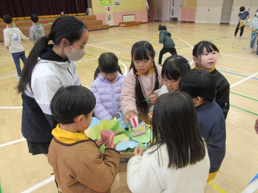 北中山小学校で行われた児童会主催の七色まつりに年長組の子どもたちが参加しました。