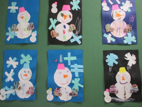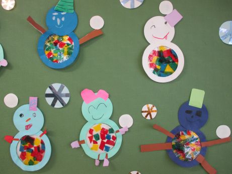 各クラスでは季節に合わせて雪だるまの製作をしました。