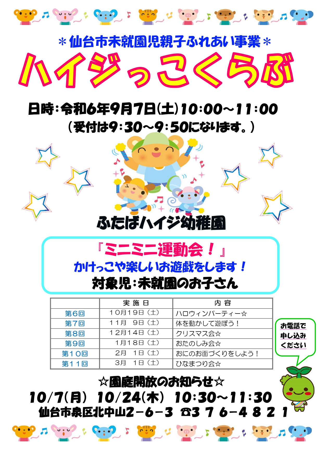9月のハイジっこくらぶは「ミニミニ運動会!」です。ぜひ、遊びにきてください。