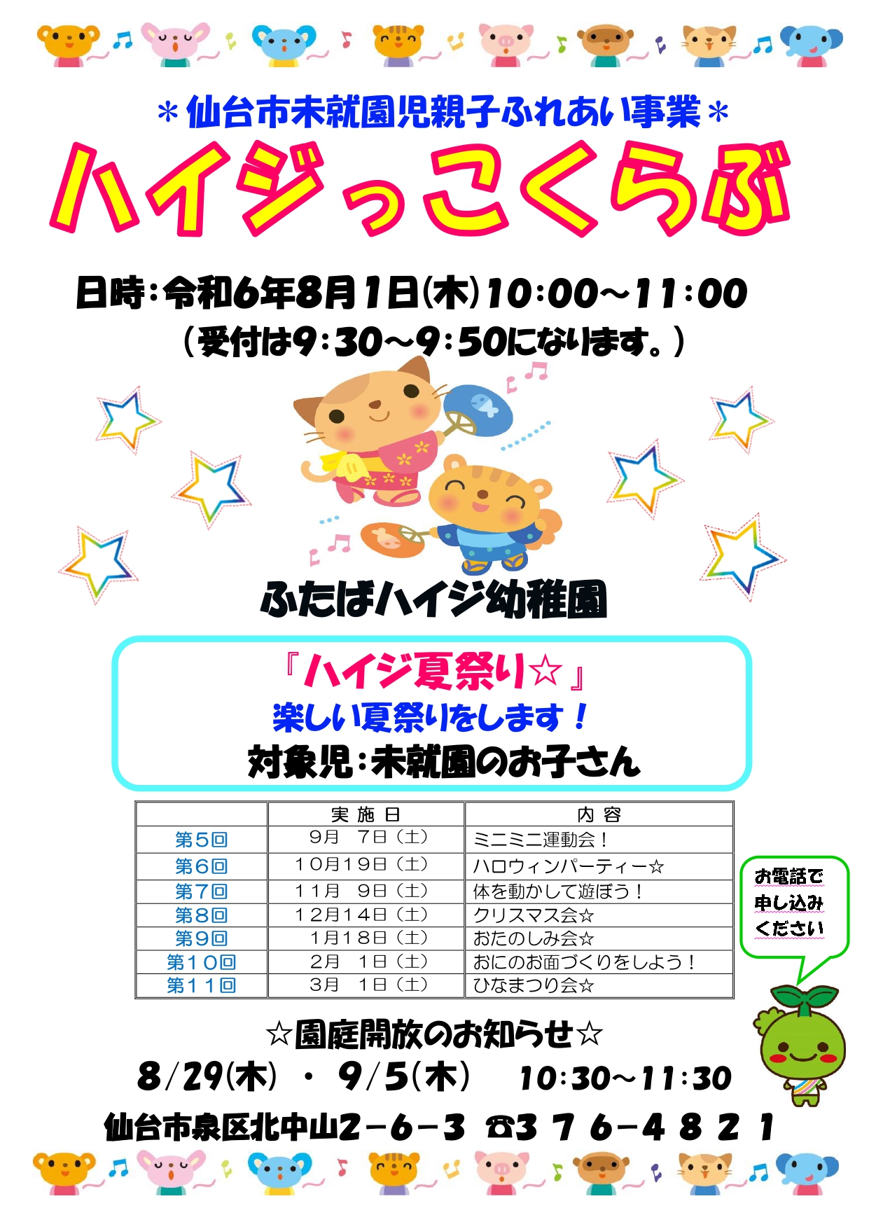 8月 ハイジっこくらぶのご案内